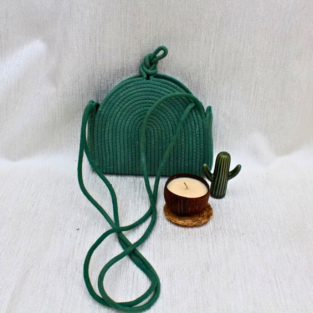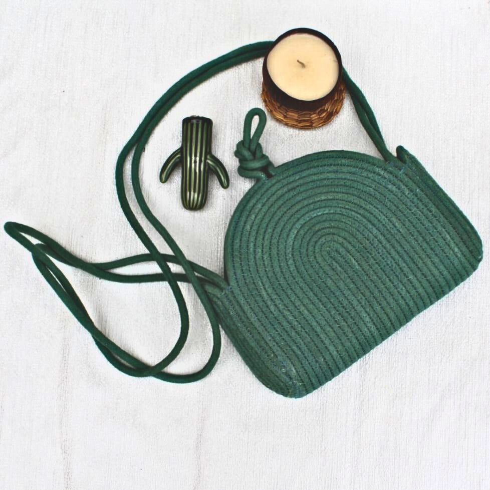 A refreshing handcrafted sling bag made with natural jute in an earthy green shade. Lightweight, sturdy, and designed for everyday ease. Its handwoven character reflects true artisan craftsmanship.
