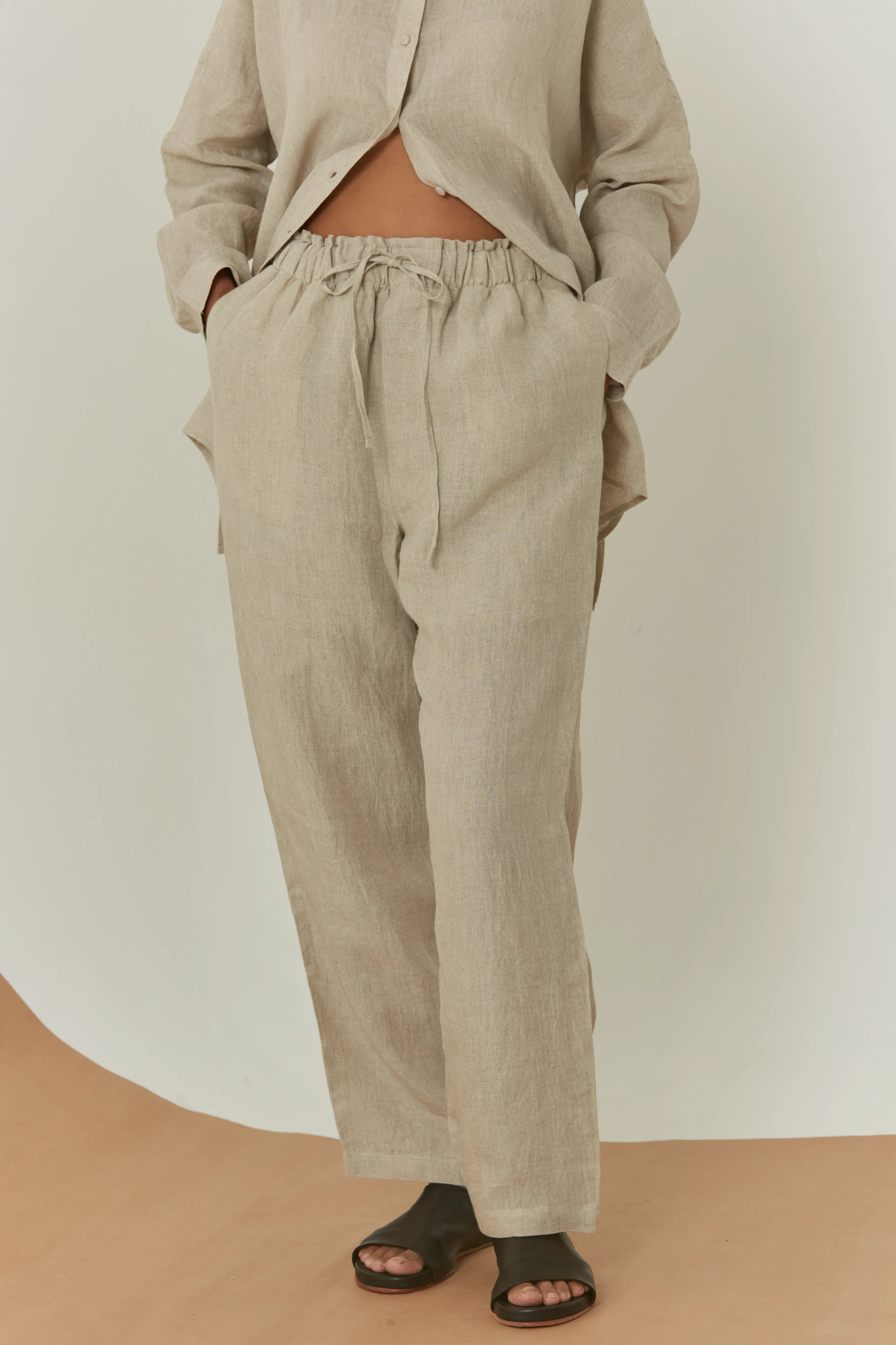 Discover ultimate ease with the Zai Pant, handwoven from 100% unbleached Kora linen for unmatched breathability and year-round comfort.