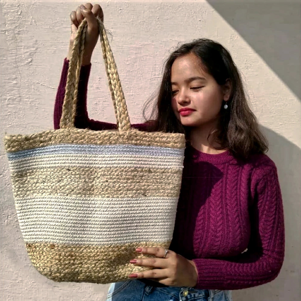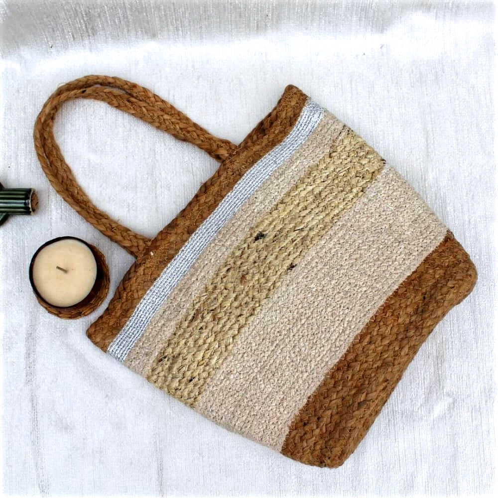 Beige Jute Tote Bag