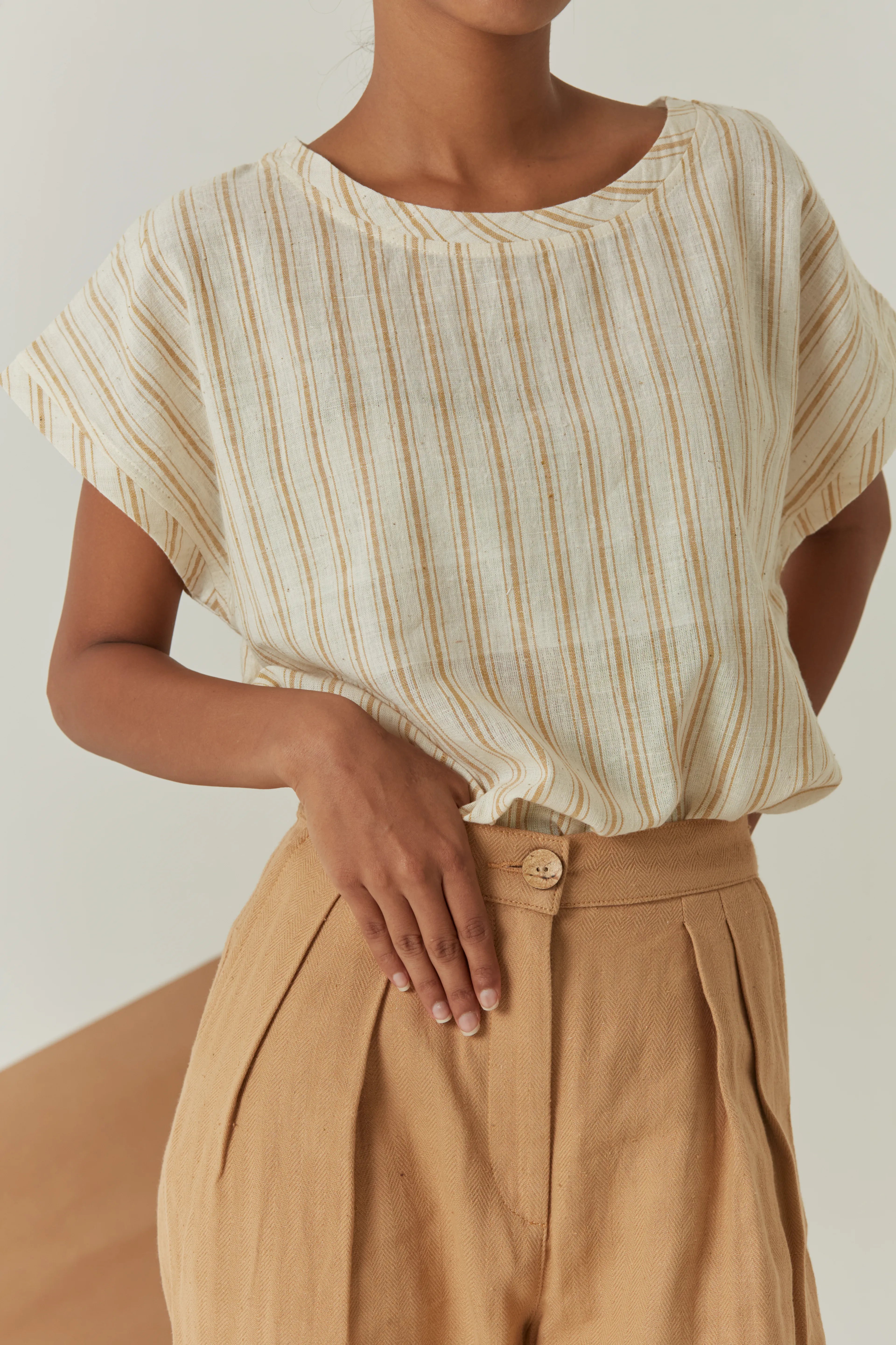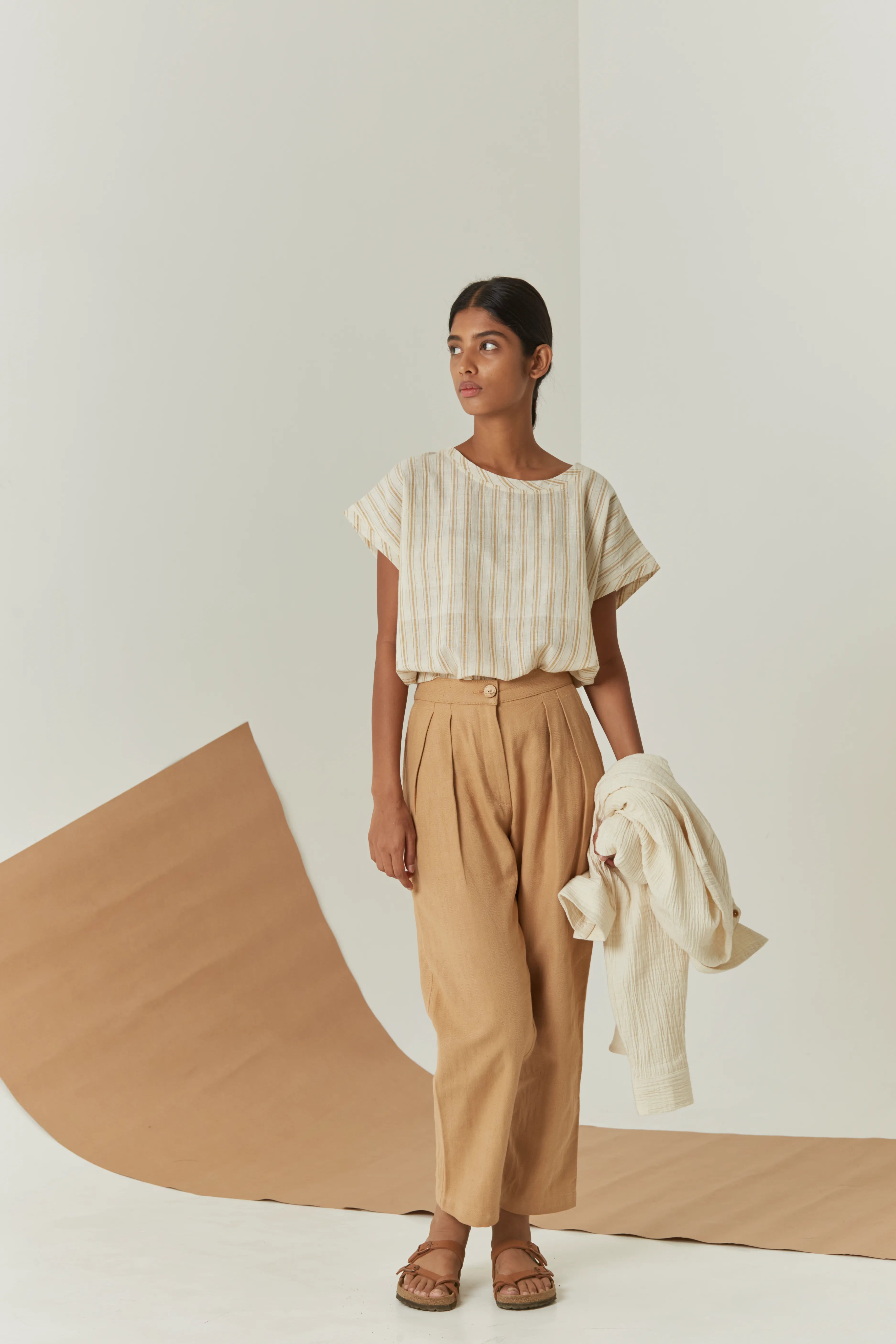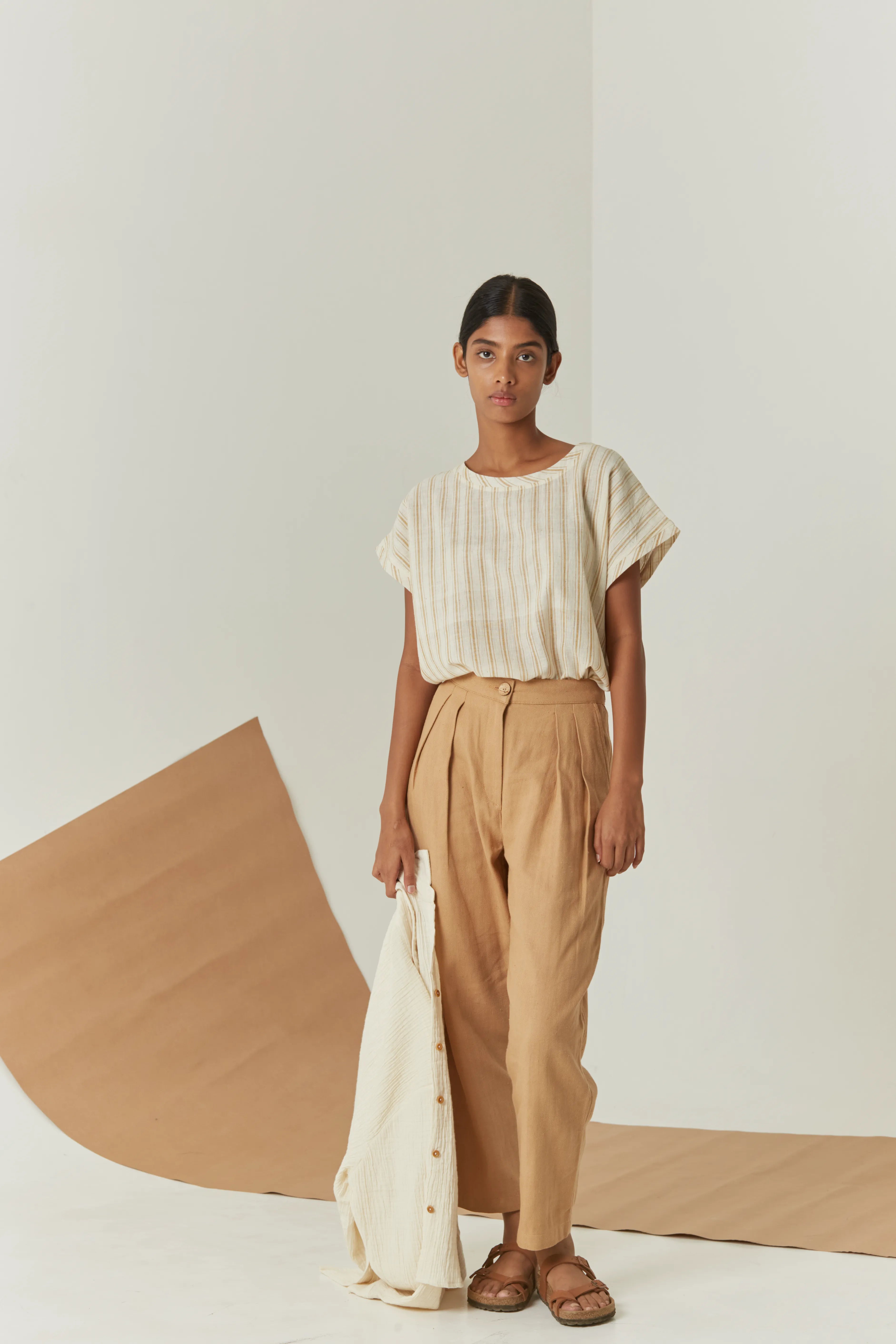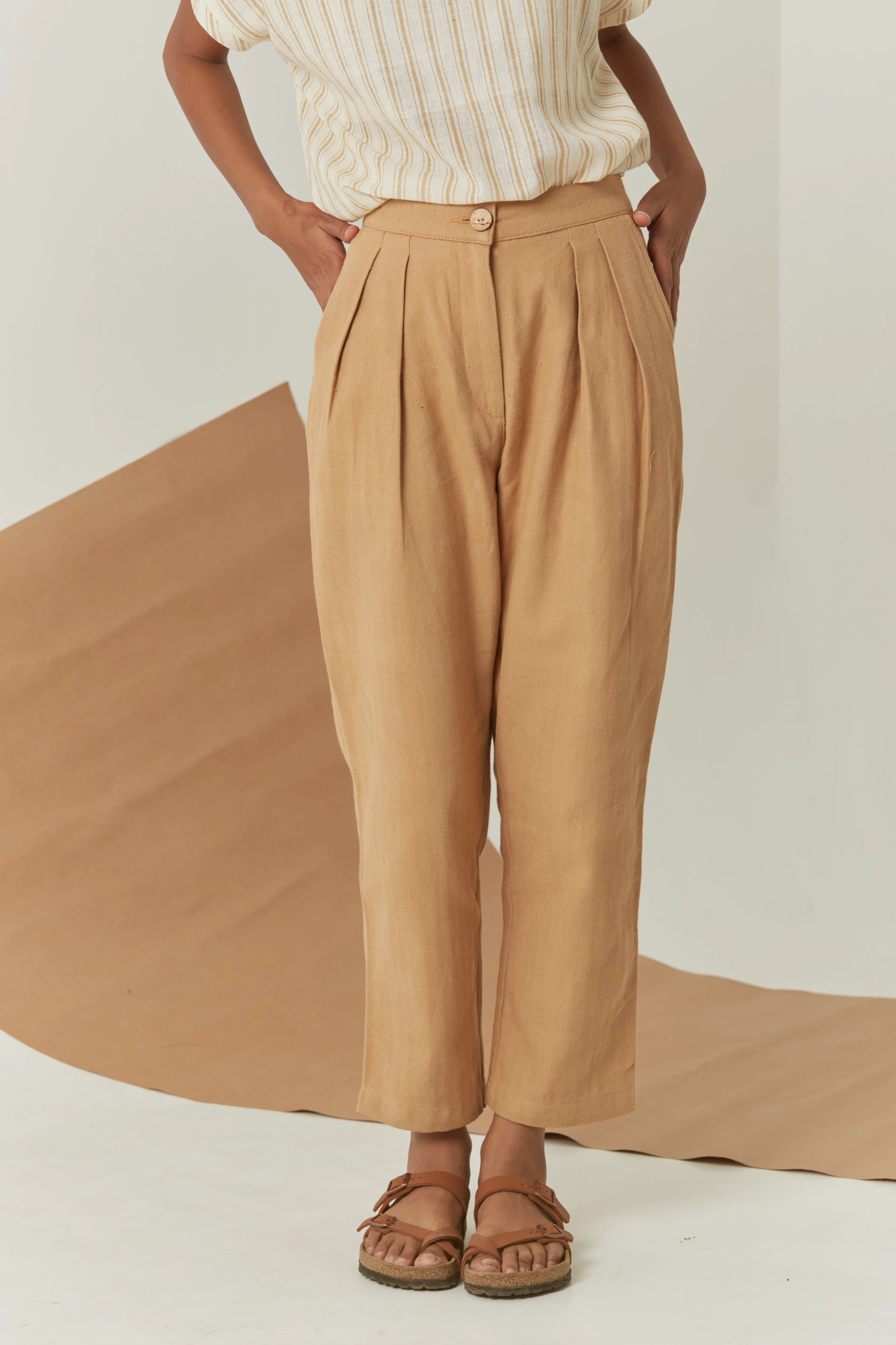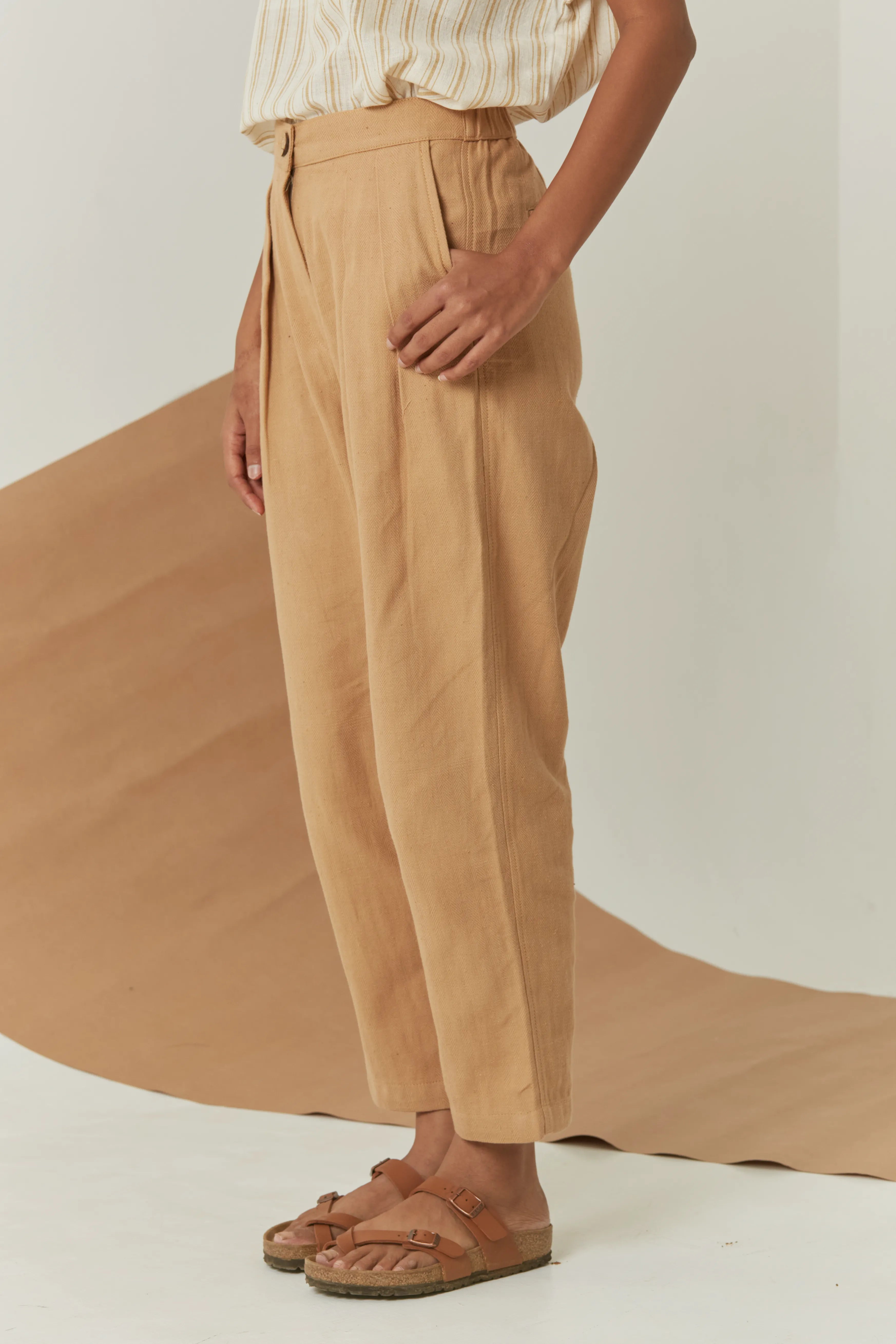 Handwoven Kala Cotton Pleated Pant - Sandy